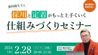 【開催終了】採用と定着がもっと上手くいく 仕組みづくりセミナー スタッフの隠れたモヤモヤ、気付いていますか?スタッフが離脱する原因の一つは「院長へ抱く小さなモヤモヤの積み重ね」。あなた... 2024.04.15